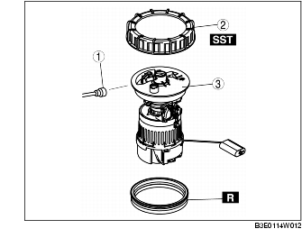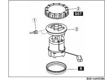 - • Fuel is very flammable liquid. If fuel spills or leaks from the pressurized fuel system, it will cause serious injury or death and facility breakage. Fuel can also irritate skin and eyes. To prevent this, before performing the fuel pump unit removal/installation, always complete the "Fuel Leak Inspection After Fuel Pump Unit Installation".