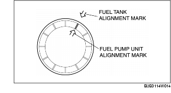 1. Align the fuel tank and fuel pump unit alignment marks as shown in the figure.
