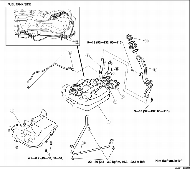 2. Follow "BEFORE SERVICE PRECAUTION" before performing any work operations to prevent fuel from spilling from the fuel system.