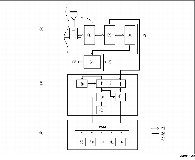 - • According to the signals from the switches and sensors in the input system, the PCM outputs the signal which matches the present driving condition to the linear type solenoid, ON/OFF type solenoids and the duty-cycle type solenoids in the hydraulic pressure control mechanism.