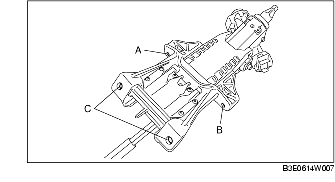 - • Do not try to remove the steering wheel by hitting the shaft with a hammer. The column will be damaged.